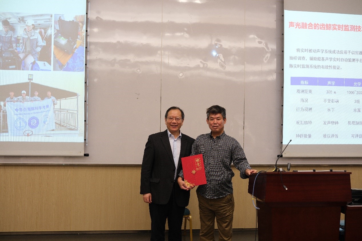 在此次访问中,应UIC理工科技学院生命科学系副系主任、广东省数据科学与技术交叉应用重点实验室成员詹肇泰副教授之邀,王东晓教授为UIC师生作了题为“面向中华白海豚响应海洋动力过程的耦合监测系统”的报告。报告涵盖了中华白海豚研究的重要性、目标检测算法开发、视频自动检测模型开发等方面,深入浅出地介绍了海洋科学领域的前沿技术与研究成果。报告引起了与会师生的浓厚兴趣和热烈讨论,促进了两校在海洋科学交叉研究方面的了解与合作。